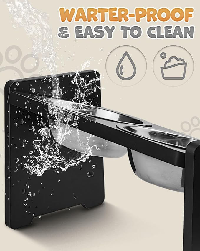 - Sturdy & Easy to Clean: The elevated dog bowl is durable and odor-free. It comes with two stainless steel bowls, each with a 6-inch inner diameter, suitable for various types of pet food and water. The bowls are dishwasher safe for easy cleaning.It should be noted that our dog bowls stand cannot be in contact with water for a long time. Try to wipe off the remaining water on the surface of the dog bowl after cleaning.