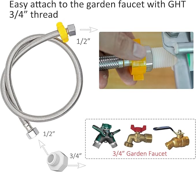 - Hose adapter included for easy connection to 3/4 GHT garden faucet