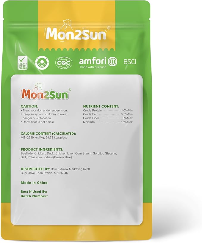 MON2SUN Dog Treats, Triple Flavor 5 Inch Chicken Liver Duck and Chicken Wrapped Rawhide Snacks for Small and Medium Dogs, 31.75 Oz (45 Count-Pack of 1)