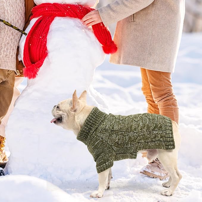 KOOLTAIL Thermal Knitted Dog Sweater for Small Medium Large Dogs, Turtleneck Cable Knit Doggy Winter Coat Warm Clothes Sweatshirt Outfits for Cold Weather, Pullover Pet Jumper for Puppy Cats Green SM