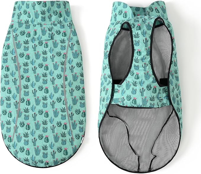 Mile High Life Dog Raincoat, Adjustable Waterproof Reflective Rain Jacket for Small Medium Large Dogs, Lightweight Breathable Pet Rain Coat with Leash Hole(Green Cactus,L Chest 32-40")