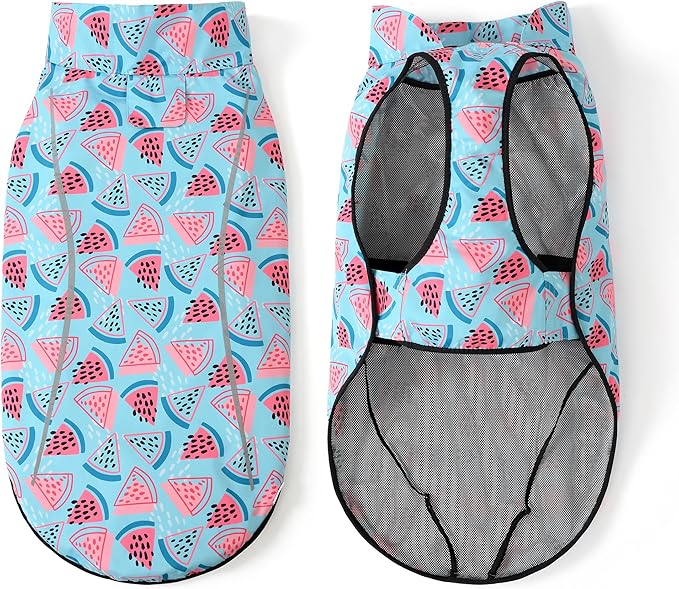 Mile High Life Dog Raincoat, Adjustable Waterproof Reflective Rain Jacket for Small Medium Large Dogs, Lightweight Breathable Pet Rain Coat with Leash Hole(Light Blue Watermelon,M Chest 26-32")