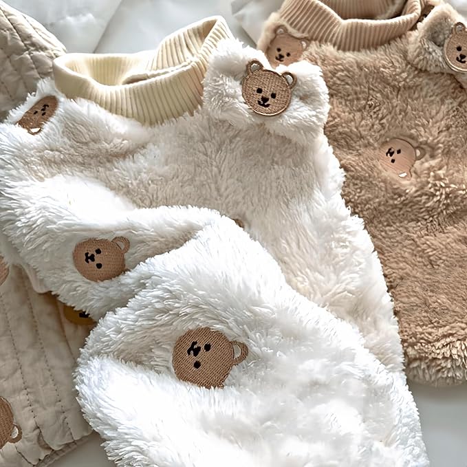 Cute Pet Apparel Bear Pattern Cartoon Dog Clothes All Season Sleeveless Puppy Kitten Pullover Soft Skin-Friendly (Brown, M (4.4-7.7lbs))