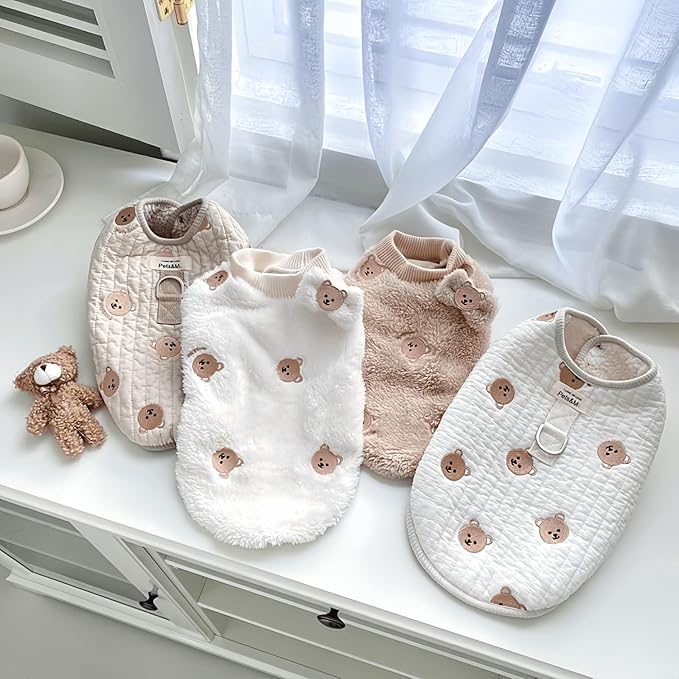 Cute Pet Apparel Bear Pattern Cartoon Dog Clothes All Season Sleeveless Puppy Kitten Pullover Soft Skin-Friendly (White, M (4.4-7.7lbs))