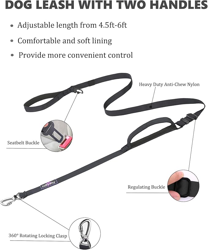 - 2-in-1 dog leash: Our double handle dog leash can be used not only for pet traction, but also as a car seat belt to protect the safety of your cute dog and prevent you from getting distracted while driving. Our buckle design is suitable for all cars