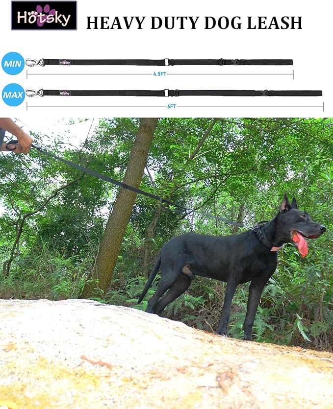 - Adjustable Dog Leash: Hotsky training dog leash can be adjustable from 4.5-6ft,which provides a perfect balance between freedom and control, give enough freedom to your dog,but everything is under your control.Simply adjust to your desired size according to the slide buckle