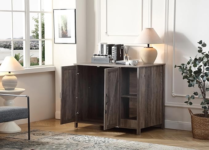 Large Cat Litter Enclosure With Litter Collector, Enclosure for self-Cleaning Litter Boxes,Adjustable Shelf for Dog Proof and Storage,charging station,Locks Added for cat,Cat House,Grey