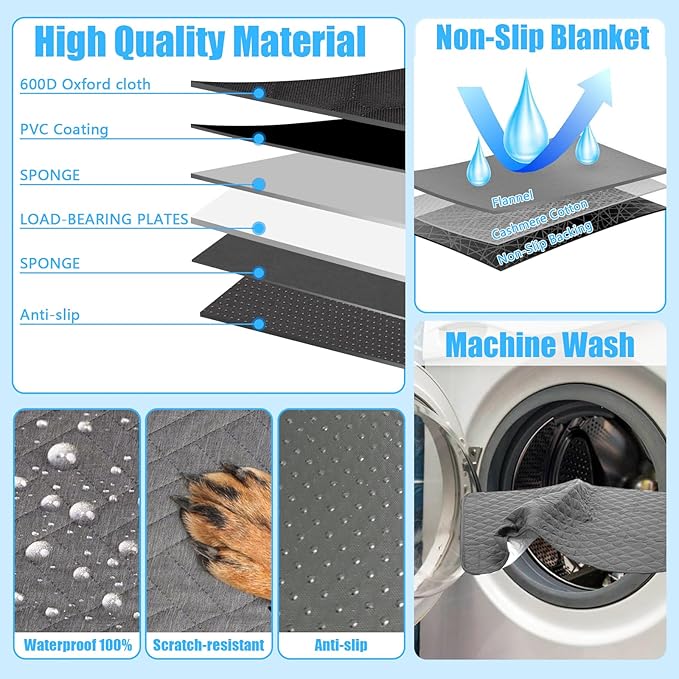 - Waterproof, Non-Slip, Wear-Resistant: The back seat cover of the dog car is made of 600D Oxford cloth, built-in 6 layers of protection, waterproof, non-slip, anti-scratch, not easy to move, using thickened waterproof PP hollow board, more durable than other wood base. It fits perfectly in your car seat