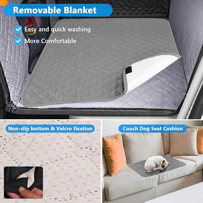 - Soft and Movable Blanket: The blanket is made of velvet cotton and flannel. The bottom has been treated to increase non-slip properties, ensuring a comfortable surface while solving the problem of slippage on the dog seat cover. The blanket is secured with Velcro and can be easily disassembled. Even if you remove the blanket for machine washing, the dog seat cover can still be used normally without any concerns