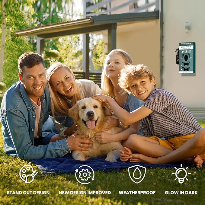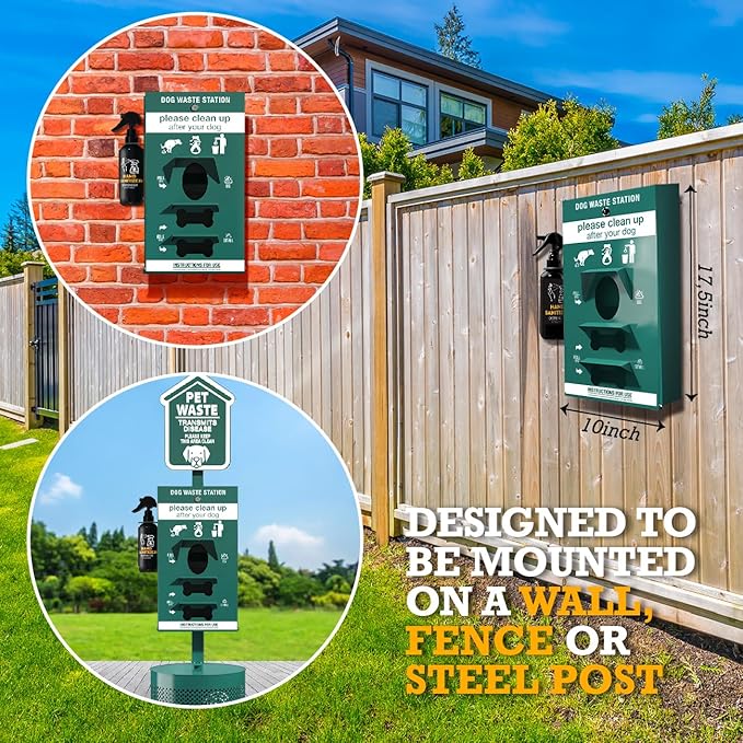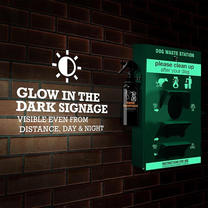 - 2024 New Improved Design: Our dog poop station outdoor offers more for less, unique heavy duty model of the best quality, made of powder-coated galvanized steel will not rust or fade unlike steel station dog, glow in the dark and hold 11.5 gallon capacity, will have years of use!