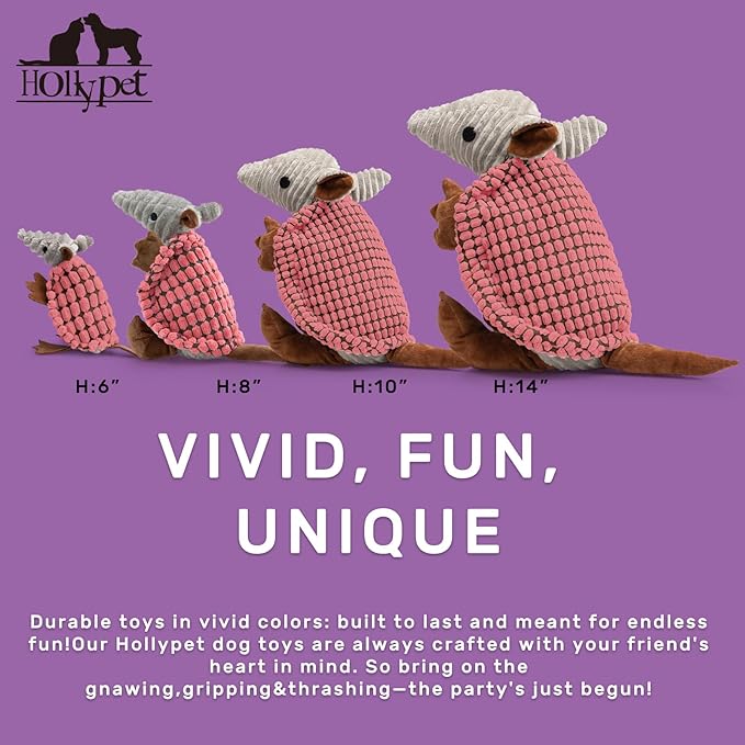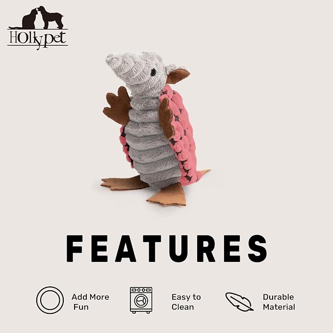 - Unique Sound - Hollypet Armadillo Squeak Toys (except 6 inch) make a sound that's not high pitched, but rather a unique and funny grunt sound that your furry friend will love. Unlike noisy bones, ropes, or other normal stuffed plush dog toys