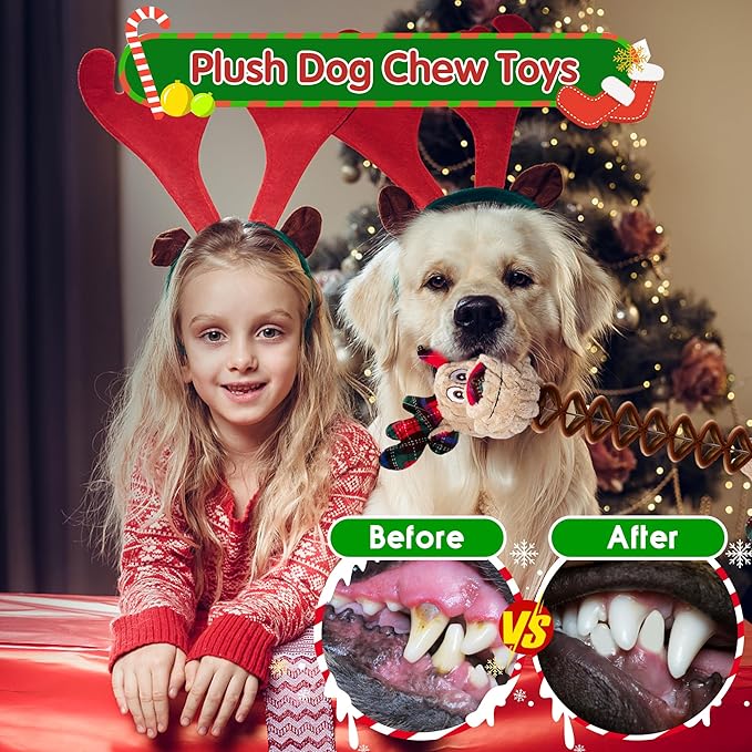- Dog's Christmas Gift: Christmas is coming soon, hurry up and prepare a surprise for your pet. Make your canine's Christmas extra special with our reindeer dog squeaky toy! several Christmas toys selected by us for you chose. This plush stuffed squeaky toy is a perfect gift choice for your furry baby, will bring endless smiles and lasting happiness to all.