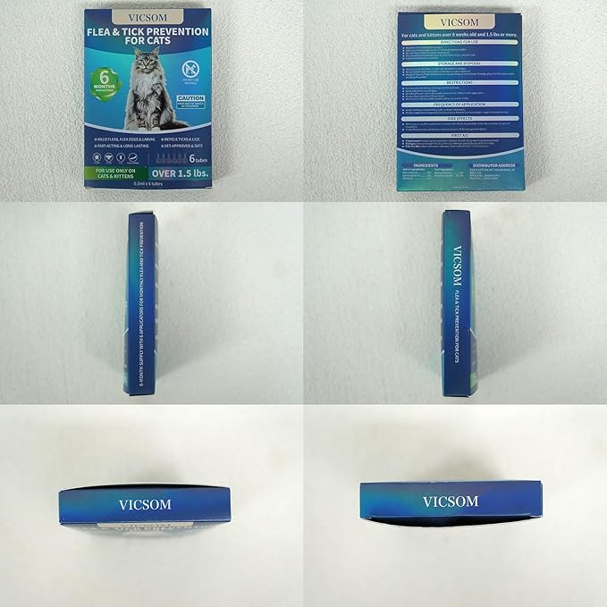 VICSOM Flea Treatment for Cat Flea and Tick Prevention for Cats Kitten, 6-Month Supply, Cat Flea Treatment & Control, Repellent, Fast Acting Topical Drops for Cats, Over 1.5 lbs, 24-Hour Protect