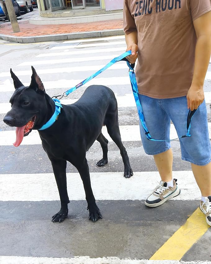 Hotsky Heavy Duty Dog Leash,4.5-6 FT Adjustable Durable Nylon Seatbelt Lead with Two Padded Traffic Handle and Carabiner for Large Medium and Small Breed Dogs,Blue Camo