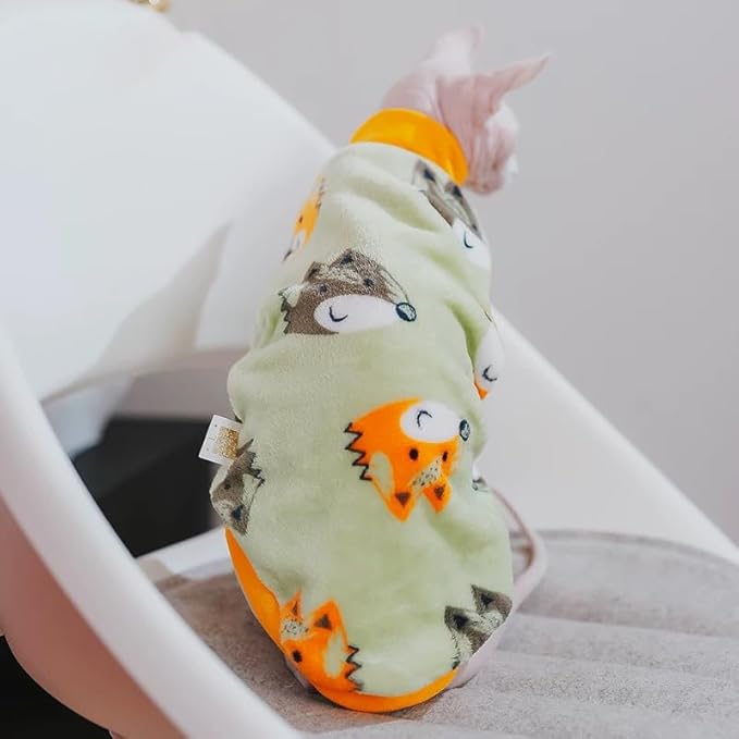 Sphynx Cat Warm Turtleneck Sweater, Thick Soft Double-Sided Fleece Clothes for Cats, Two-Legged Winter Onesie for Cats and Small Dogs,Pjs for Cats and Puppy (Fox, L (5-6.5lbs))