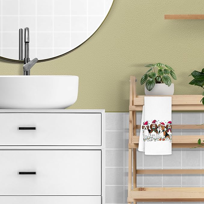Beagle Christmas Kitchen Towels, Beagle Gifts Dish Towels Tea Towels for Kitchen, Christmas Hand Towels for Bathroom Kitchen Decor, 16x24 Inches