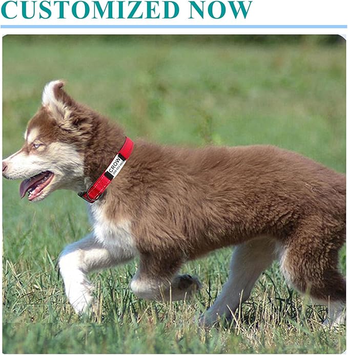- 【Engraved Dog Collar】Nocmxta customized dog collar is laser engraved, with name and phone numbers,long term clear visibility,preventing pet lost.Titanium steel material nameplate,not rusted,not deformed.Fixed position, keep quiet, protect hearing.