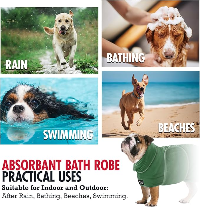 - SUPER ABSORBENT: Our microfiber dog drying coat has exceptional water-absorbing capabilities, holding over 5 times its weight in water. This makes drying your dog much faster and easier compared to other dog drying robes.