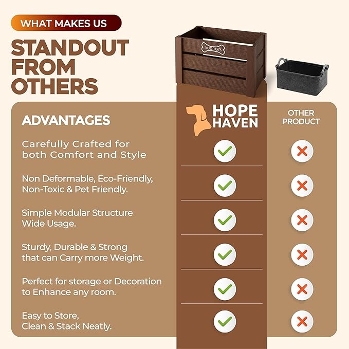 - The Perfect Gift for Pet Lovers - Give the gift of organization and style. The Hope Haven Wooden Dog Toy Bin makes an ideal present for dog owners, new pet parents, or anyone who loves to keep their furry friend’s toys organized in a stylish way.