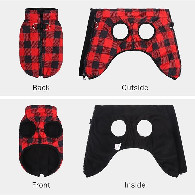 - STURDY D-RING: The D-ring on the back of the dog fleece jacket is made of ultra-durable material giving this winter coat also the function of a chest harness. You can directly buckle the leash to go out to short walk your dog. It eliminates the tedious process before going out, and less wearing makes the dog more comfortable