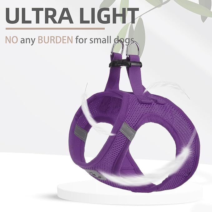- COMFORTABLE MATERIAL, DAILY WALKING, FOUR SEASONS WEARING: - The harness is made of durable polyester, and it's adopted with an air-mesh design. The whole harness is very soft, lightweight, and breathable. Even if your dog wears it all day, he won't feel any discomfort. For daily walking or running, it is a very easy thing to do. Besides, this is a four seasons harness, it keeps the dog cool on hot days and keeps the dog warm on cold days