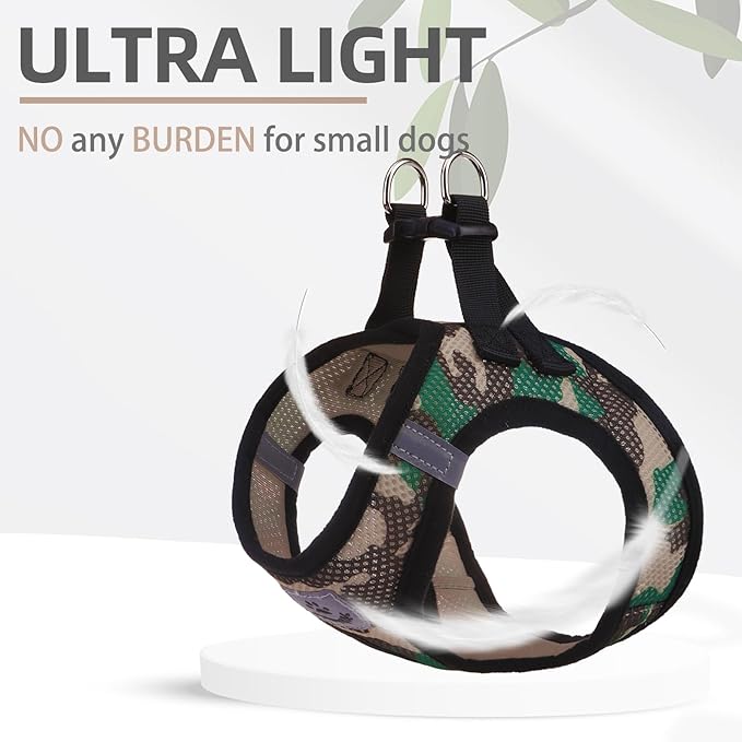 - COMFORTABLE MATERIAL, DAILY WALKING, FOUR SEASONS WEARING: - The harness is made of durable polyester, and it's adopted with an air-mesh design. The whole harness is very soft, lightweight, and breathable. Even if your dog wears it all day, he won't feel any discomfort. For daily walking or running, it is a very easy thing to do. Besides, this is a four seasons harness, it keeps the dog cool on hot days and keeps the dog warm on cold days