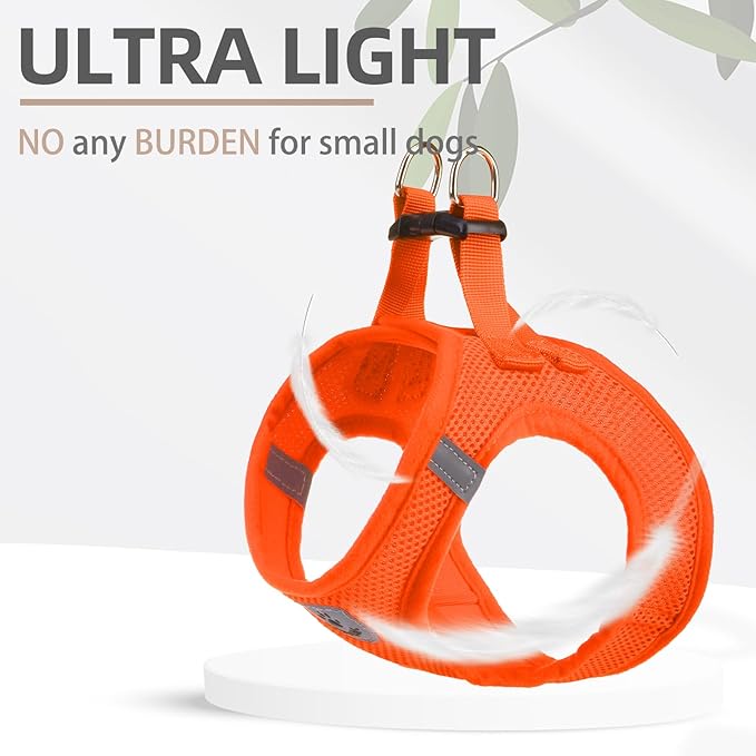 - COMFORTABLE MATERIAL, DAILY WALKING, FOUR SEASONS WEARING: - The harness is made of durable polyester, and it's adopted with an air-mesh design. The whole harness is very soft, lightweight, and breathable. Even if your dog wears it all day, he won't feel any discomfort. For daily walking or running, it is a very easy thing to do. Besides, this is a four seasons harness, it keeps the dog cool on hot days and keeps the dog warm on cold days