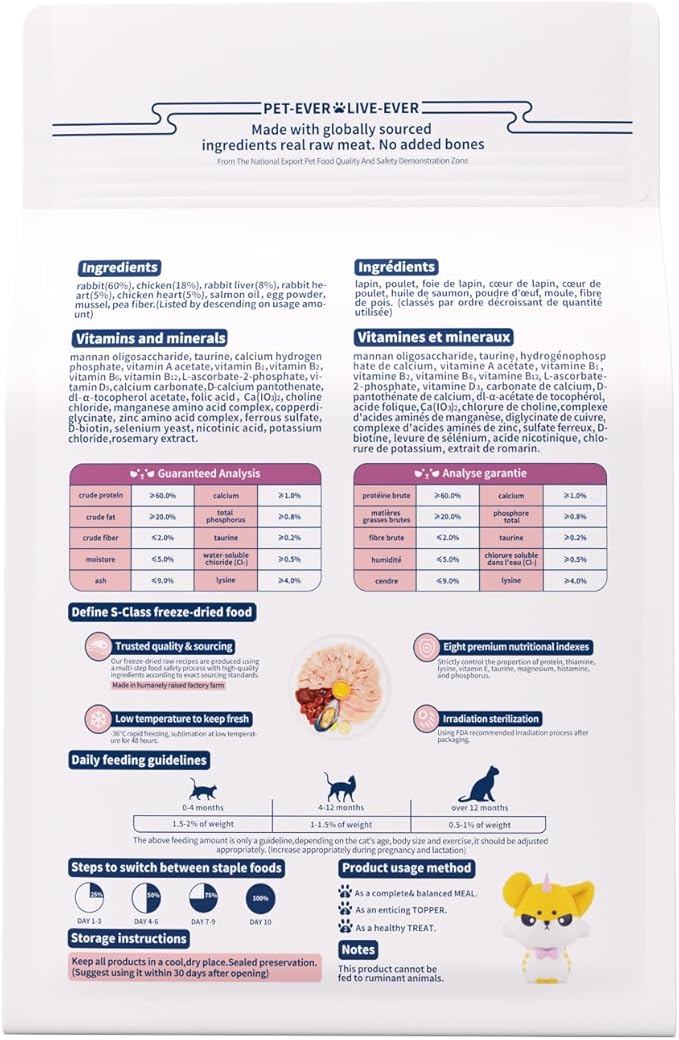 Freeze-Dried Cat Food, 97% Animal Origin Soft Dry Food for Cats Kitten, High Protein Healthy Freeze Dried Cats Raw Treat & Topper (Rabbit Recipe - 14 Ounce)