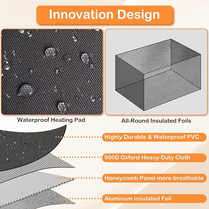 - 【Unique Design】: Our outside cat house features an all-enclosed design, with a passage that includes a transparent door curtain, ensuring your cat can come and go freely while staying warm and secure. The entrance design not only allows easy access for your cat but also effectively blocks wind and rain, providing a cozy refuge. The spacious interior allows your cat to curl up on the heated pad and enjoy peaceful moments. Plus, the insulated materials and waterproof roof of outdoor heated cat house weatherproof ensure that even in harsh weather, your cat remains dry and warm inside cat heated house.