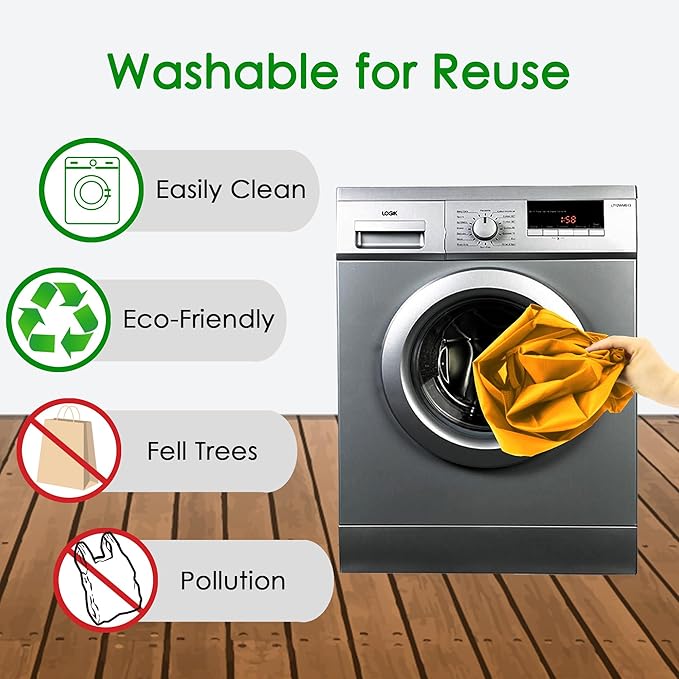 - MACHINE WASHABLE & REUSABLE: Our heavy duty fabric tote bags can be washed by washing machine. You can just throw grocery bags in the washer when they are dirty, and then air-dry before proceeding to the next shopping.These shopping bags bulk can help to reduce your impact on the environment by using reusable bags.