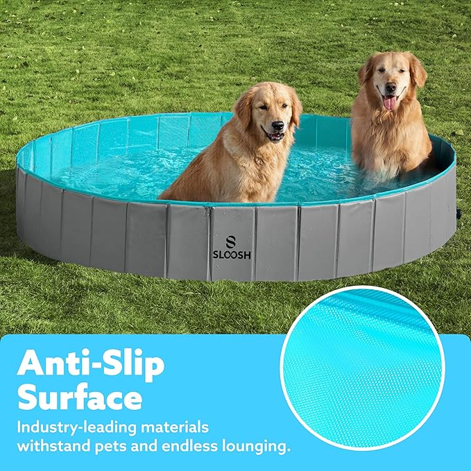 SLOOSH Foldable Dog Kiddie Pool - Portable Hard Plastic Doggie Swimming Pool, Anti-Slip Collapsible Pets Bath Tub Suitable for Kids Toddler Indoor Outdoor Backyard Use (Gray, 63" x 12")