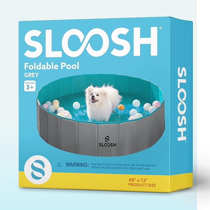 SLOOSH Foldable Dog Kiddie Pool - Portable Hard Plastic Doggie Swimming Pool, Anti-Slip Collapsible Pets Bath Tub Suitable for Kids Indoor Outdoor Backyard Use (48" x 12", Grey)