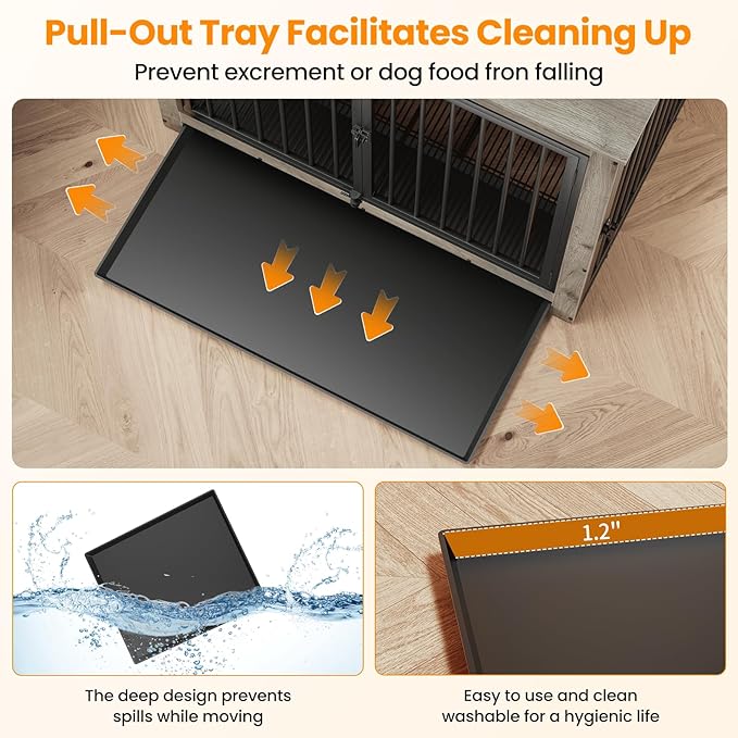 Dog Crate Furniture, Large Dog Crate Furniture, Dog Crate End Table for Large and Medium Dogs, Wooden Cage Kennel Furniture Indoor, Modern Dog Crate with Multi-Purpose Removable Tray