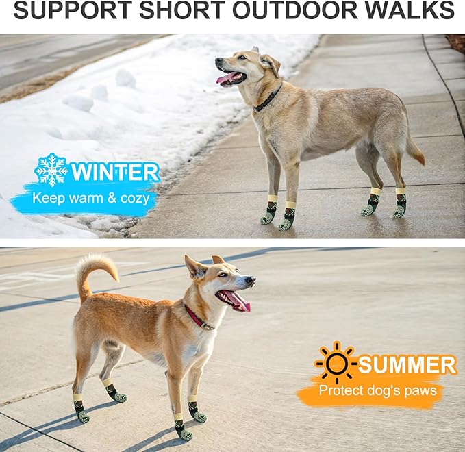 - -DOG SOCKS TO PREVENT LICKING AND SCRATCHING: Strong traction on hardwood floors and other slippery surfaces make them the perfect socks for dogs with joint and mobility issues; these indoor dog socks prevent licking wounds or scratches on hardwood floors, sofas, or other furniture caused by your naughty pets; provide paw protection for summer keeping your dog's paws safe from hot pavements, heat, and other potential hazards