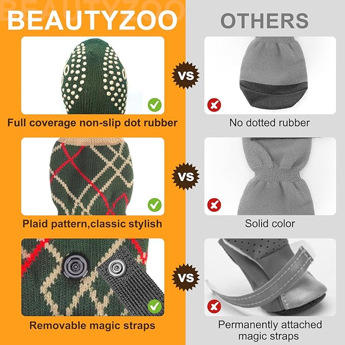 BEAUTYZOO Non Slip Dog Socks to Prevent Licking Paws -Dog Boots & Paw Protectors with Grippers on Hardwood Floors, Dogs Shoes for Hot/Cold Pavement Small Medium Large Senior Dogs Booties