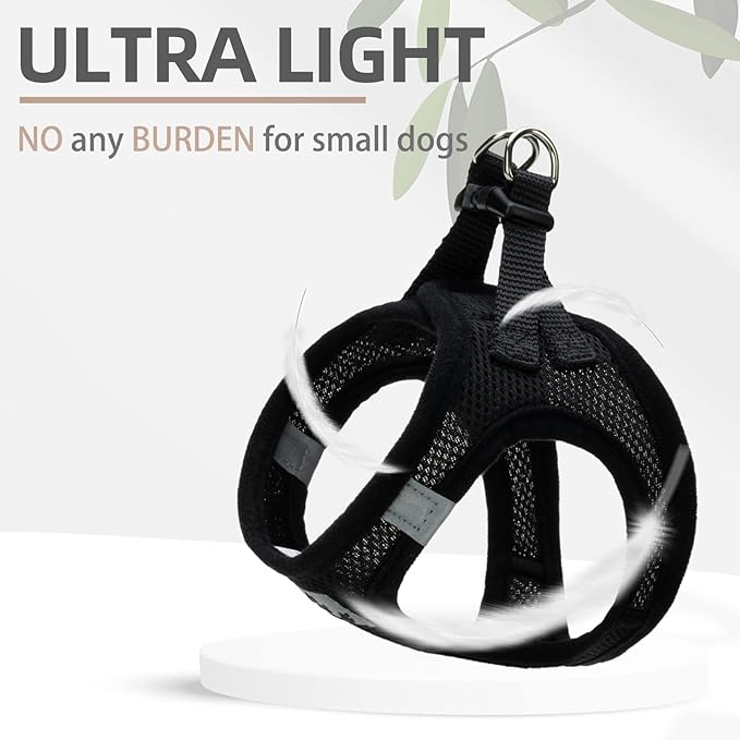 - COMFORTABLE MATERIAL, DAILY WALKING, FOUR SEASONS WEARING: The harness is made of durable polyester, and it's adopted with an air-mesh design. The whole harness is very soft, lightweight, and breathable. Even if your dog wears it all day, he won't feel any discomfort. For daily walking or running, it is a very easy thing to do. Besides, this is a four seasons harness, it keeps the dog cool on hot days and keeps the dog warm on cold days