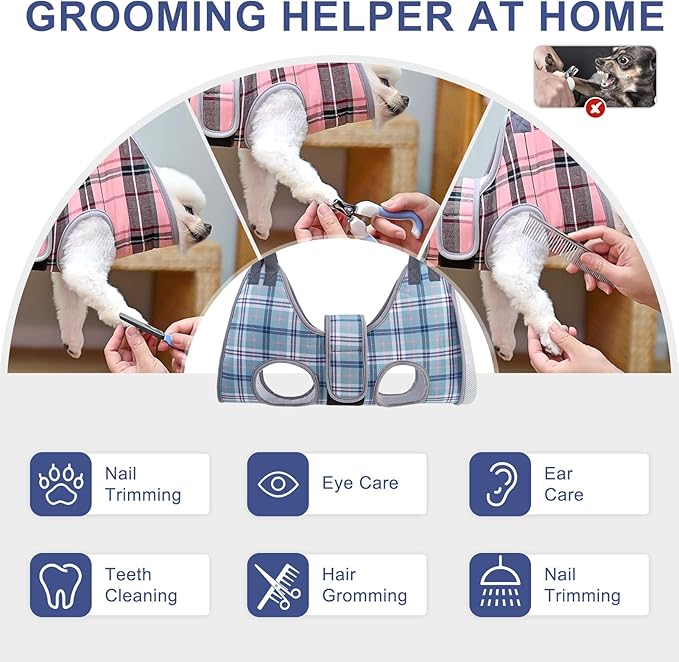 BEAUTYZOO Dog Grooming Hammock, Small Dog Sling for Nail Trimming, Dog Hanging Harness for Claw Care with Thick Fabric Neck Support Wide Strap Restraint Cat Grooming Hammock, Blue S