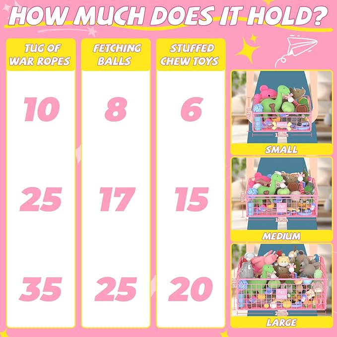 - 【Indestructible】An indestructible and durable dog toy basket made from high-quality, lead-free, and rust-resistant metal, providing reliable toy storage for our furry friend for years.