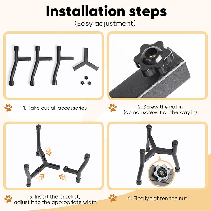 - 【Wide Adjustable Range】The stand can accommodate bowls with a wide diameter, making it versatile for different types of dog bowls.