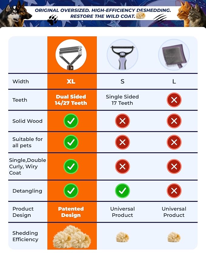 - â°ăQuick and Efficient GroomingăSave time with our versatile grooming tool. The dual-sided design features a wide-tooth side for tackling tough mats and a fine-tooth side for deshedding and thinning, making grooming faster and easier.