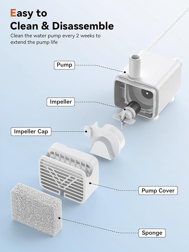 - Easy to Monitor and Maintenance: The pet water fountain features a transparent window for easy monitoring of water levels. It features dry burn protection that automatically stops the flow of water to prevent the pump from drying out. It’s also easy to disassemble and clean, with dishwasher-safe components, making maintenance a breeze.