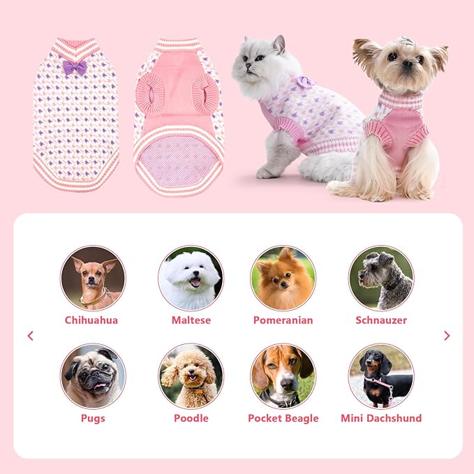 - Fit Breed: fits all kinds of small slender dogs and cats, Chihuahua / Pomeranian / Pugs / Maltese / Shih Tzu puppy / Poodle / Mini dachshund / Maltipoo / Schnauzer/Pocket Beagle /Bichon /Frise Pug and so on, Note: The dog sweaters are suitable for small or medium dogs and not suitable for large dogs