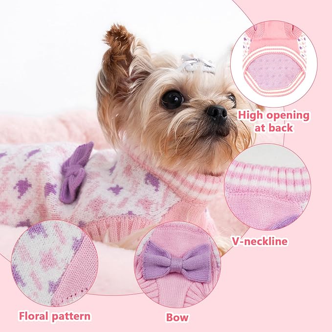 - Wide Application:The design with a bow is stylish and charming, making your little dog look even more adorable, ladylike (gentlemanly) and eye-catching This dog pullover sweater is the perfect outfit for Christmas, Thanksgiving, Valentine's Day, and all holidays or parties,Also great gift for your friend with pets, it is a essential apparel for every pet wardrobe. The bow tie is located on the back of the product and can be removed and sewn to the chest if desired