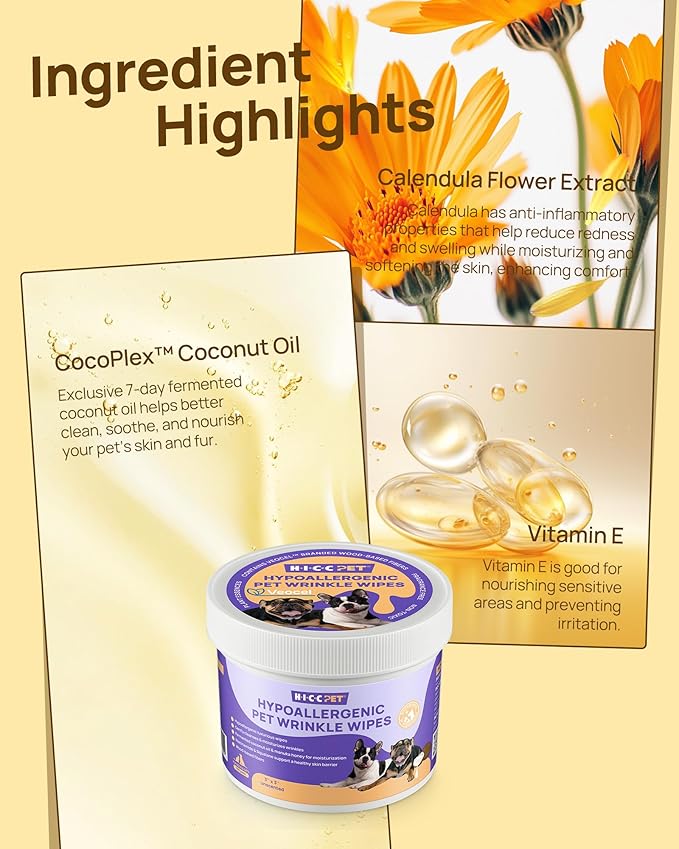 - Powered by Natural Healing Ingredients - Made with a blend of CocoPlex Fermented Coconut Oil and Manuka Honey for their natural cleansing and anti-inflammatory power, plus Organic Jojoba Oil to balance oils and Shea Butter to deeply hydrate. Every wipe nourishes and protects sensitive skin, helping your pet stay comfortable, soothed, and free from irritation—naturally