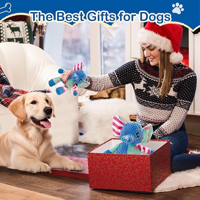 Dog Squeak Toys for Small & Medium Breeds, Puppy Teething Interactive Chewing Plush Toy to Keep Them Busy, Best Birthday, Christmas, Halloween, Easter Gift, Elephant