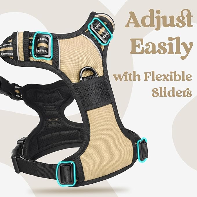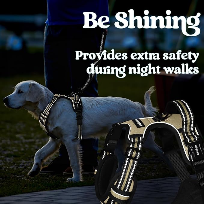 rabbitgoo Dog Harness for Large, No Pull Pet Harness with 3 Buckles, Adjustable Soft Padded Vest with Control Handle, Walking Reflective Pet Vest for Large Dogs, Beige, L