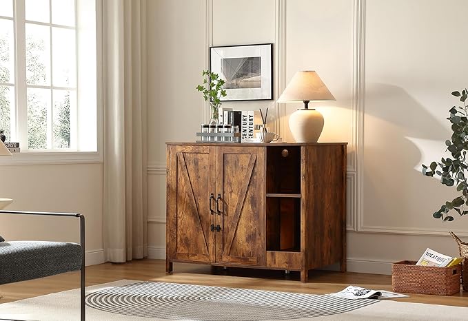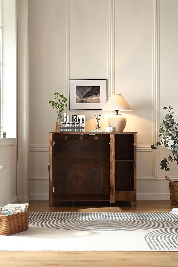 Large Cat Litter Enclosure with Litter Collector, Enclosure for self-Cleaning Litter Boxes,Adjustable Shelf for Dog Proof,Charging Station,Locks Added for cat,Cat House,Rustic Brown