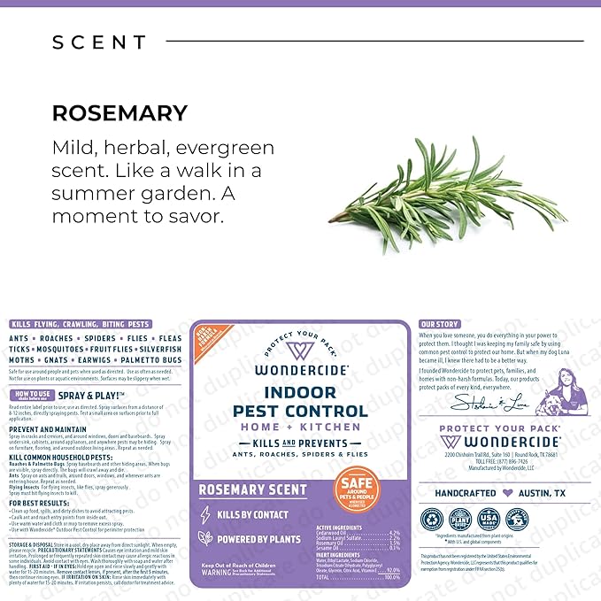 Wondercide - Indoor Pest Control Spray for Home and Kitchen - Ant, Roach, Spider, Fly, Flea, Bug Killer and Insect Repellent - with Natural Essential Oils - Pet and Family Safe — Rosemary 16 oz