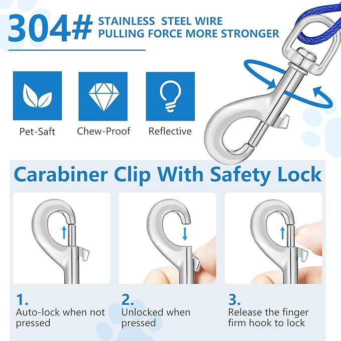- UPGRADED THICKER RINGS: Both ends of the dog cable are tightened by upgraded thicker rings, more durable and effectively solve the risk of falling off. Bring the safest protection for your fur babies.