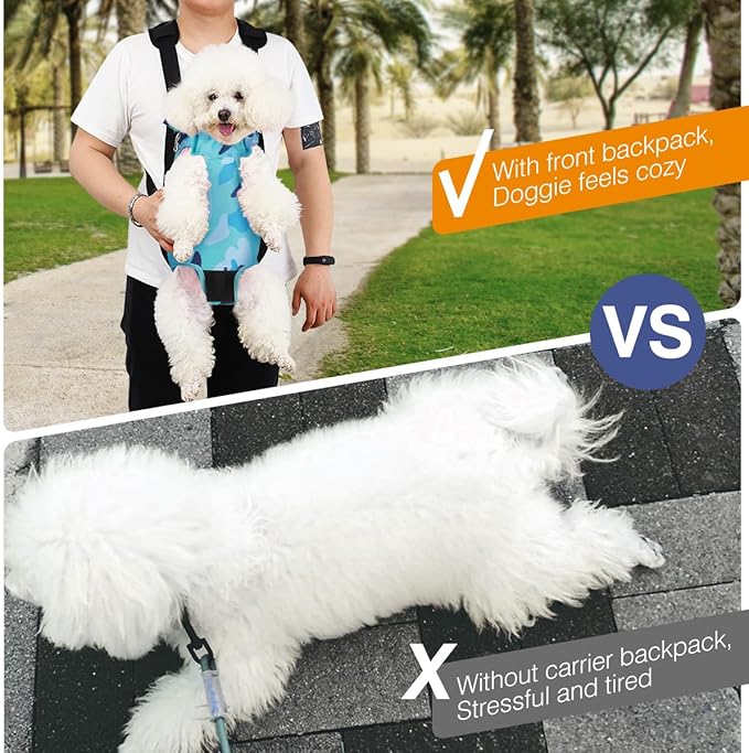 Pawaboo Pet Carrier Backpack, Adjustable Pet Front Cat Dog Carrier Backpack Travel Bag, Legs Out, Easy-Fit for Traveling Hiking Camping for Small Medium Dogs, Medium Size, Blue Camouflage